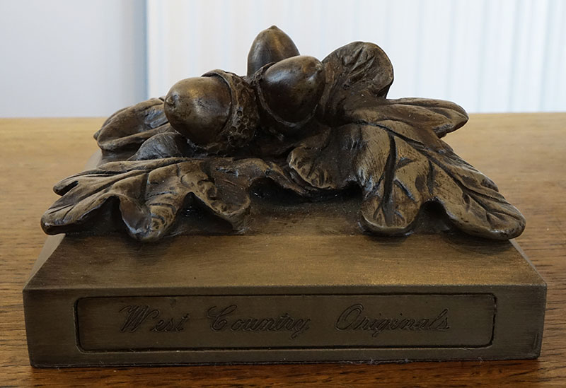 Gallery Main : Sculpture : West Country Originals : Acorn Oak Acorn Oak£50.00 By Bridget Penn-Berkeley 2 in stock Acorn Oak quantity Add to basket Category: West Country Originals Information Specifications Cold cast bronze 10 cm sq 6 cm high Weight 1 kg Related products Bull This product has multiple variants. The options may be chosen on the product page Sold Snail EmbraceSee more Wild Rose Wall Hanging (Stone)