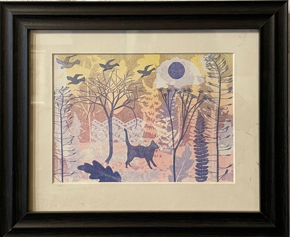 Gallery Main : Garage Gallery Exhibition : Garage Gallery Archive : Rivers of colour - Pete Borg : Cat and birds Sold Cat and birds By Pete Borg Out of stock Categories: Yule Time, Rivers of colour - Pete Borg Tag: sold Information Specifications Collagraph mixed media Weight 1.250 kg Dimensions 46 × 36 cm Related products Sold DoveSee more Sold Autumnal UmbrellaSee more Sold HighbrowSee more