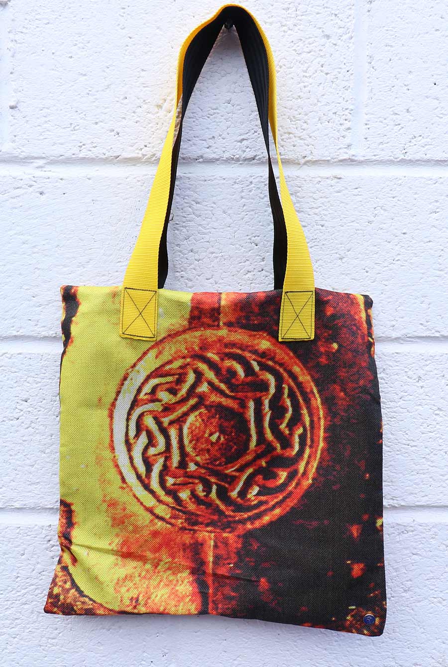 Double sided fine art print one off zip up bag with strap handle exclusive with trade mark stud 42 cm sq
