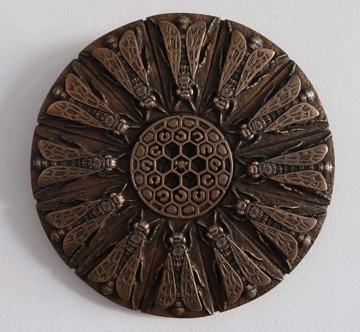 Gallery Main : Mixed Media : Bees : Dancing Bee Circle Small Dancing Bee Circle Small£45.00 Dancing Bee Circle by Bridget Penn-Berkeley Dancing Bee Circle Small quantity Add to basket Category: Bees Information Specifications Cold cast bronze 15 cm diam x 1 cm thick Weight 0.600 kg Related products Dancing Bee Circle Large Bee Jardiniere Cold Cast Bronze Bee Coaster Round