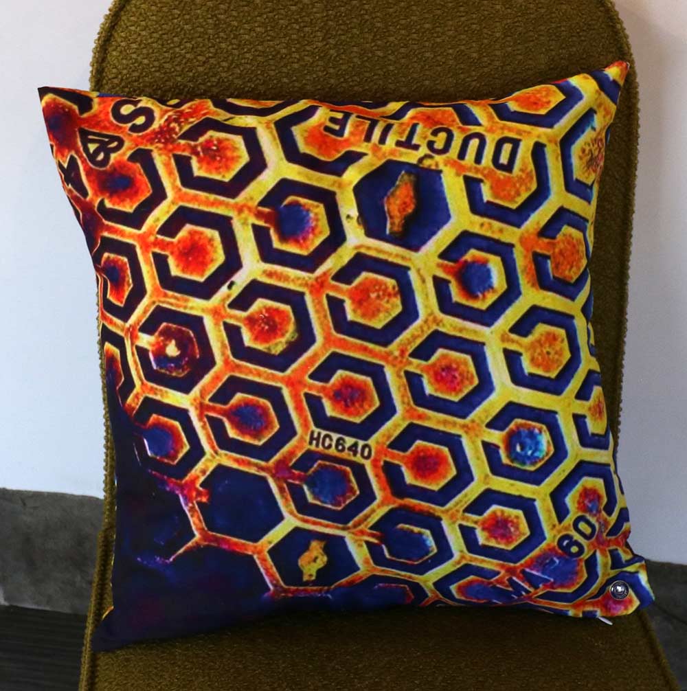 Single sided single cushion with white back and authenticity stud 42 cm sq