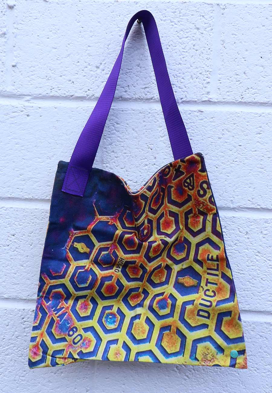 Double sided fine art print one off zip up bag with strap handle exclusive with trade mark stud 42 cm sq