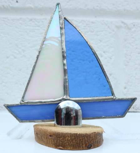 Gallery Main : Garage Gallery Exhibition : Garage Gallery Archive : Art by Nicky : Glass White and Blue Boat Glass White and Blue Boat By Nicky Farrell Out of stock Category: Art by Nicky Information Specifications Mixed Medium 8.8 – 11.3 cm, 11 – 12.5 cm, 5 – 5.4 cm Related products SeagullSee more Koi CarpSee more Black KittenSee more