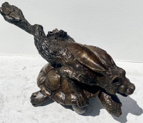 Gallery Main : Sculpture : Sculpture : Hare and the Tortoise Sold Hare and the Tortoise By Garry Jones Out of stock Category: Sculpture Tag: sold Information Specifications Cold cast bronze Weight 2.9 kg Dimensions 35 × 17 × 18 cm Related products Sold Standing Fish Sculpture 2See more Mini Frame 1 Pipistrelle Bat
