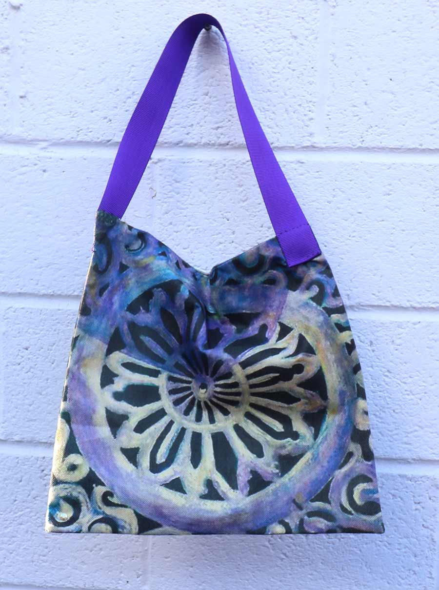 Double sided fine art print one off zip up bag with strap handle exclusive with trade mark stud 42 cm sq