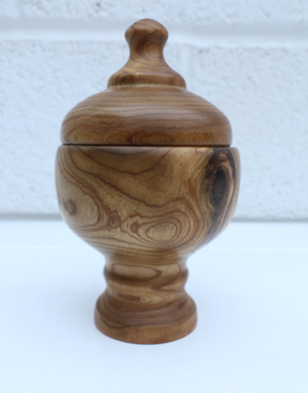 Gallery Main : Mixed Media : Wood : Lidded Goblet Lidded Goblet£45.00 Lidded Goblet by Gerry 1 in stock Lidded Goblet quantity Add to basket Category: Wood Information Specifications Laburnum Wood 9.5 cm D x 16.5 cm Weight 0.250 kg Related products Sold Egg CupsSee more Wooden Coasters Bird Feeder