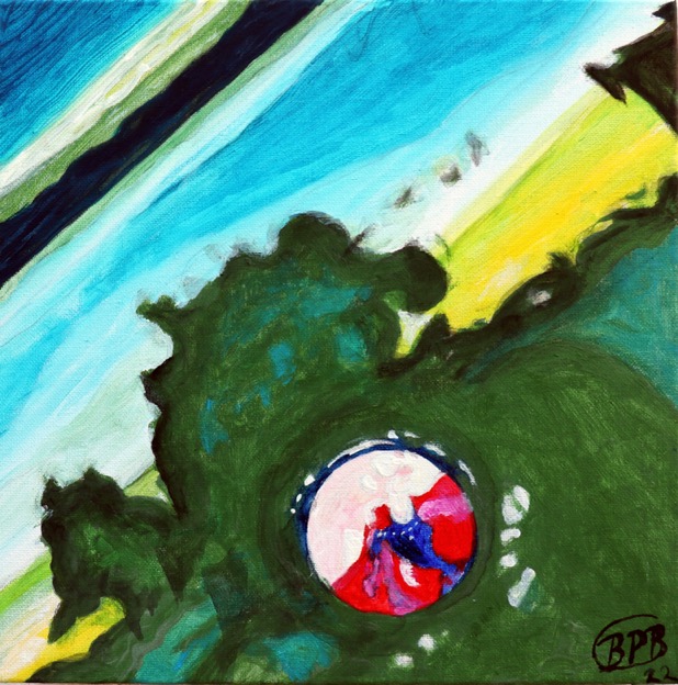 This is one of the Bridgwater Circle series of paintings image captured while walking down Old Taunton Road – the new shiny green pumping station box put by the waterboard Bridgwater, Somerset.