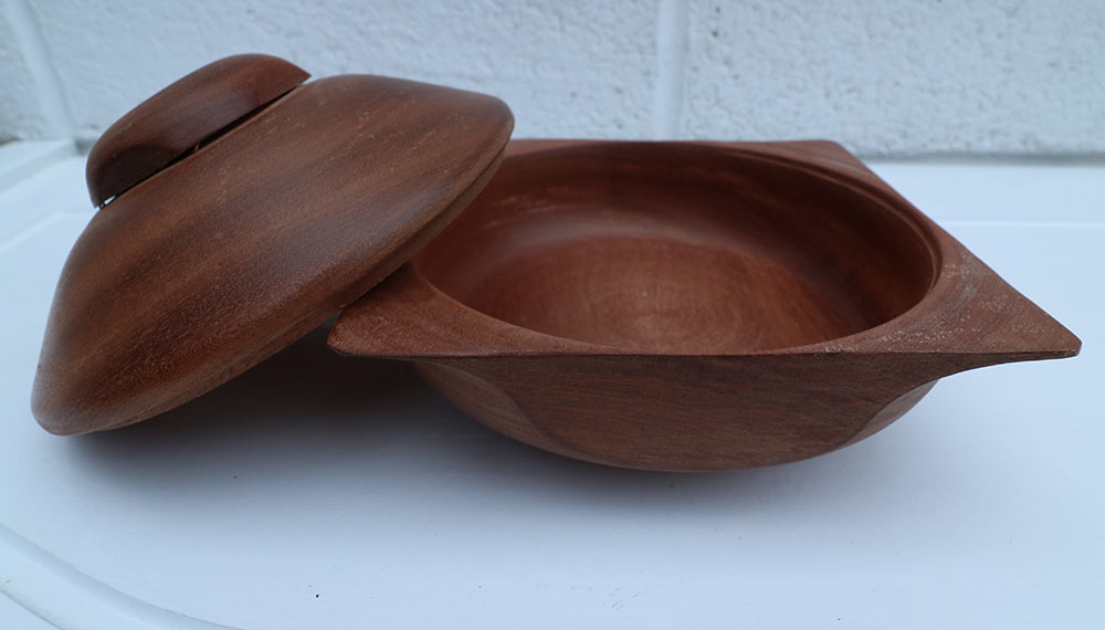 Gallery Main : Mixed Media : Wood : Mahogany Lidded Bowl Mahogany Lidded Bowl£40.00 Mahogany Lidded Bowl by Gerry 1 in stock Mahogany Lidded Bowl quantity Add to basket Category: Wood Information Specifications Mahogany Wood 16.7 cm D x 18 cm Weight 0.550 kg Related products Mortar & Pestle 004 Ash Platter Mortar & Pestle 006