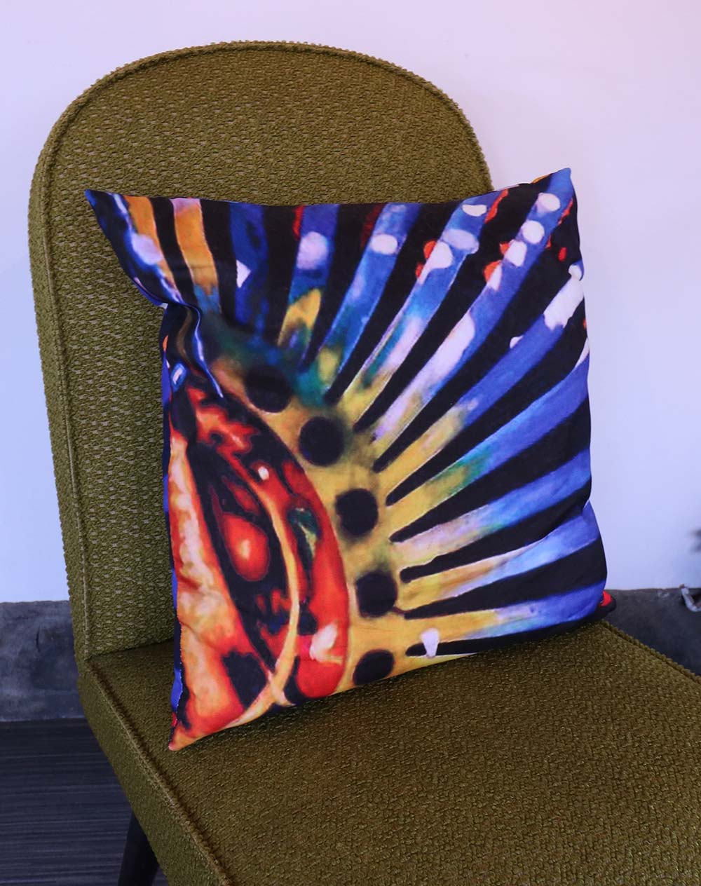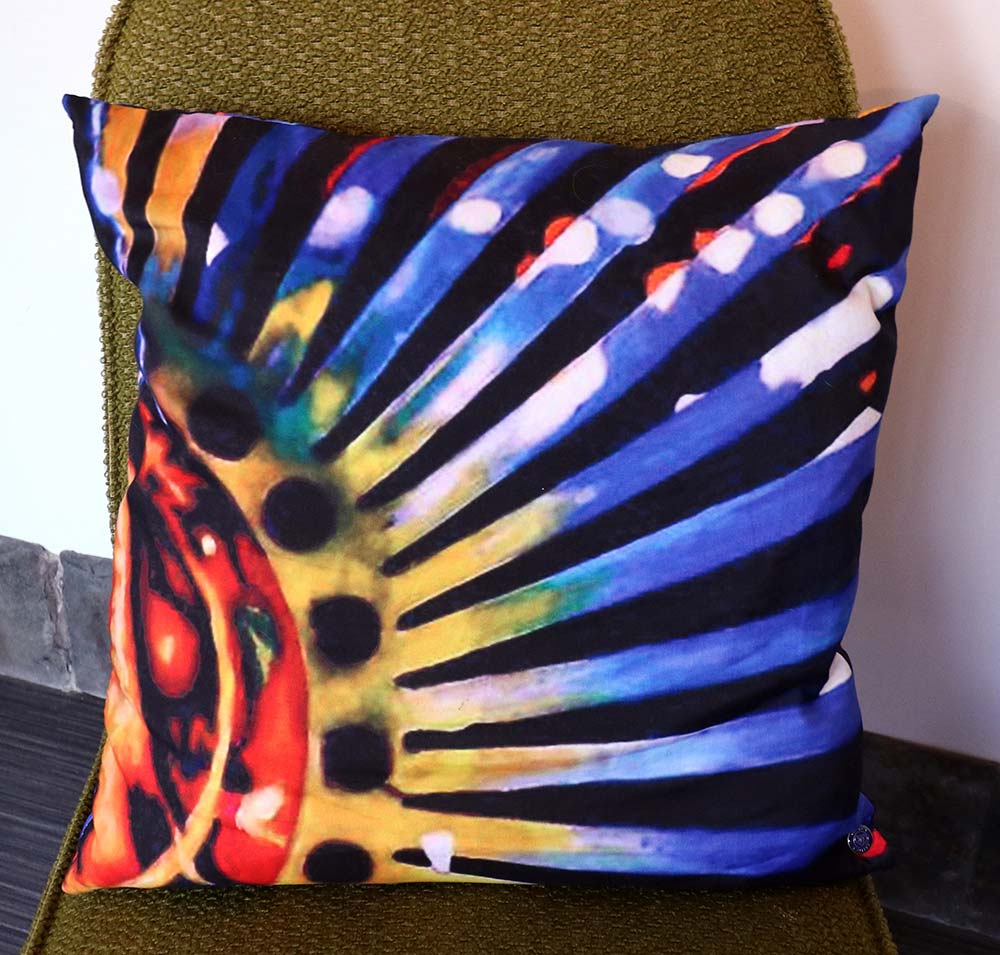 Single sided single cushion with white back and authenticity stud 42 cm sq