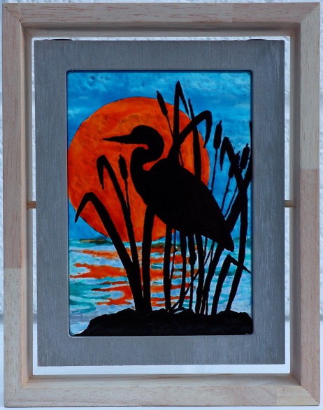 Gallery Main : Garage Gallery Exhibition : Garage Gallery Archive : Art by Nicky : Painted Heron Silhouette on glass Painted Heron Silhouette on glass By Nicky Farrell Out of stock Category: Art by Nicky Information Specifications Painted Glass Dimensions 19.5 × 24.5 cm Related products Flower BeeSee more Black KittenSee more PuffinSee more