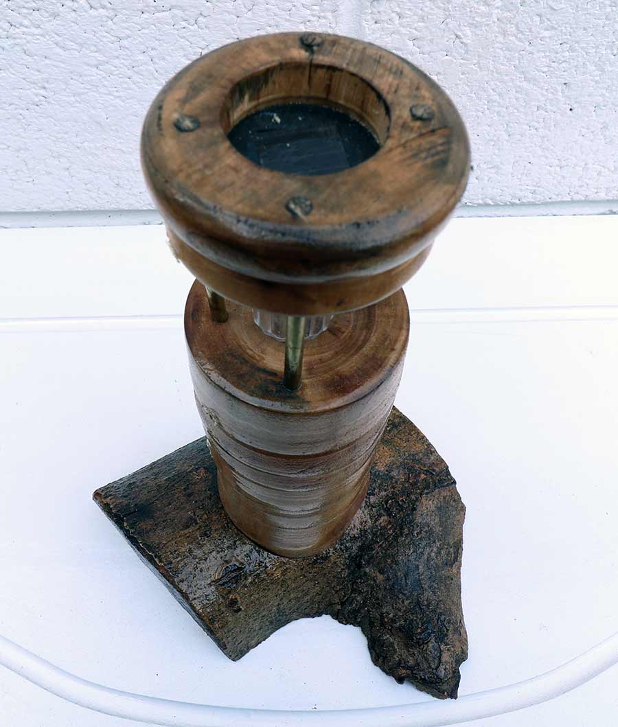 Wood and solar power light 23 cm sq x 33.5 cm tall