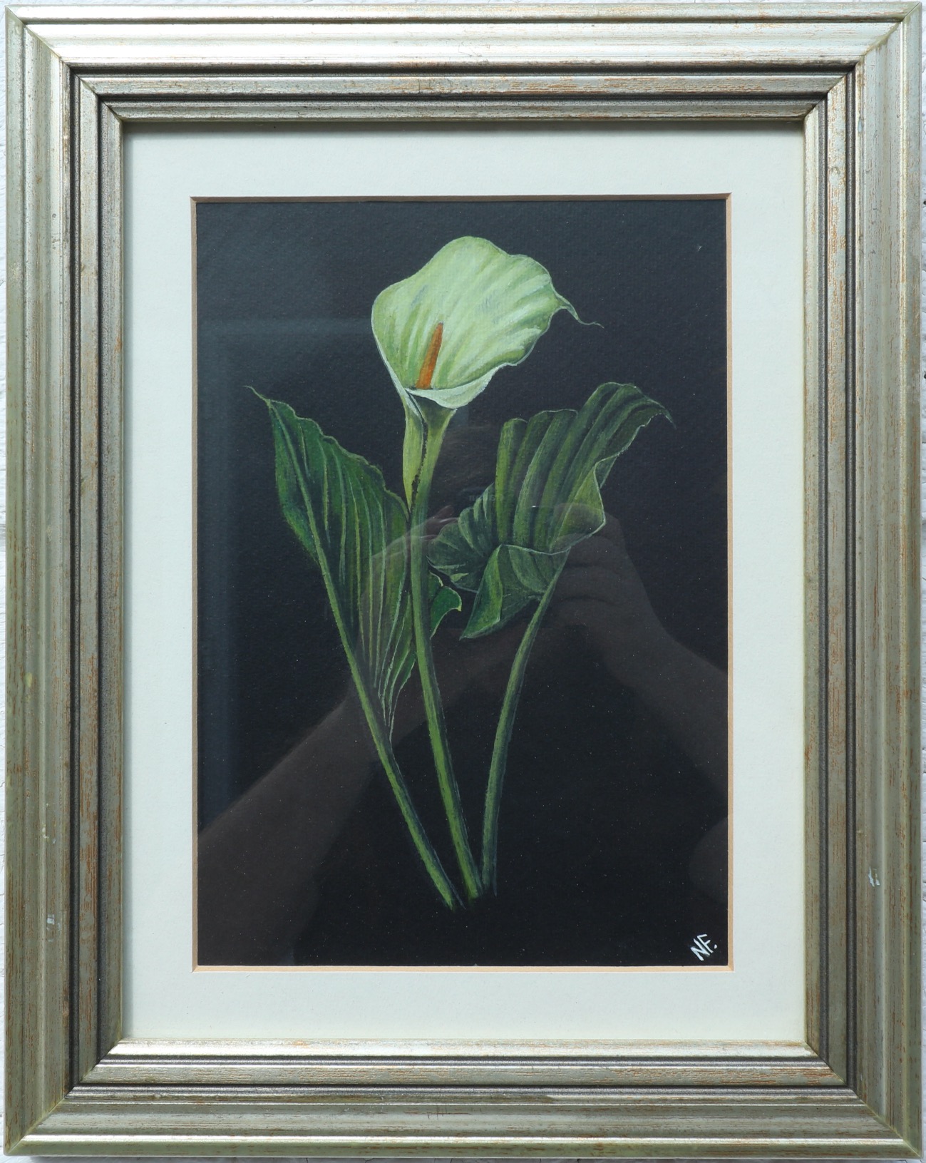 Gallery Main : Garage Gallery Exhibition : Garage Gallery Archive : Art by Nicky : Peace Lily Peace Lily By Nicky Farrell Out of stock Category: Art by Nicky Information Specifications Framed watercolour and ink Dimensions 29.3 × 37 cm Related products Black and White StagSee more Painted Tropical Sunset on glassSee more SeagullSee more