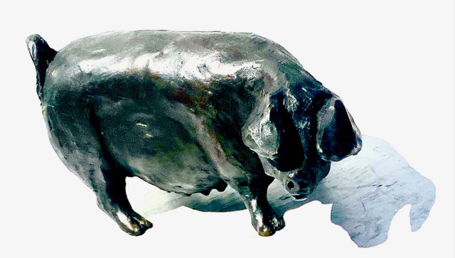 Gallery Main : Sculpture : Sculpture : Pig Pig£100.00 Unknown sculptor 1 in stock Pig quantity Add to basket Category: Sculpture Information Specifications Cold cast bronze Weight 1.6 kg Dimensions 20 × 12 × 12 cm Related products Sold Small Driftwood VillageSee more Vampire Bat Small pot