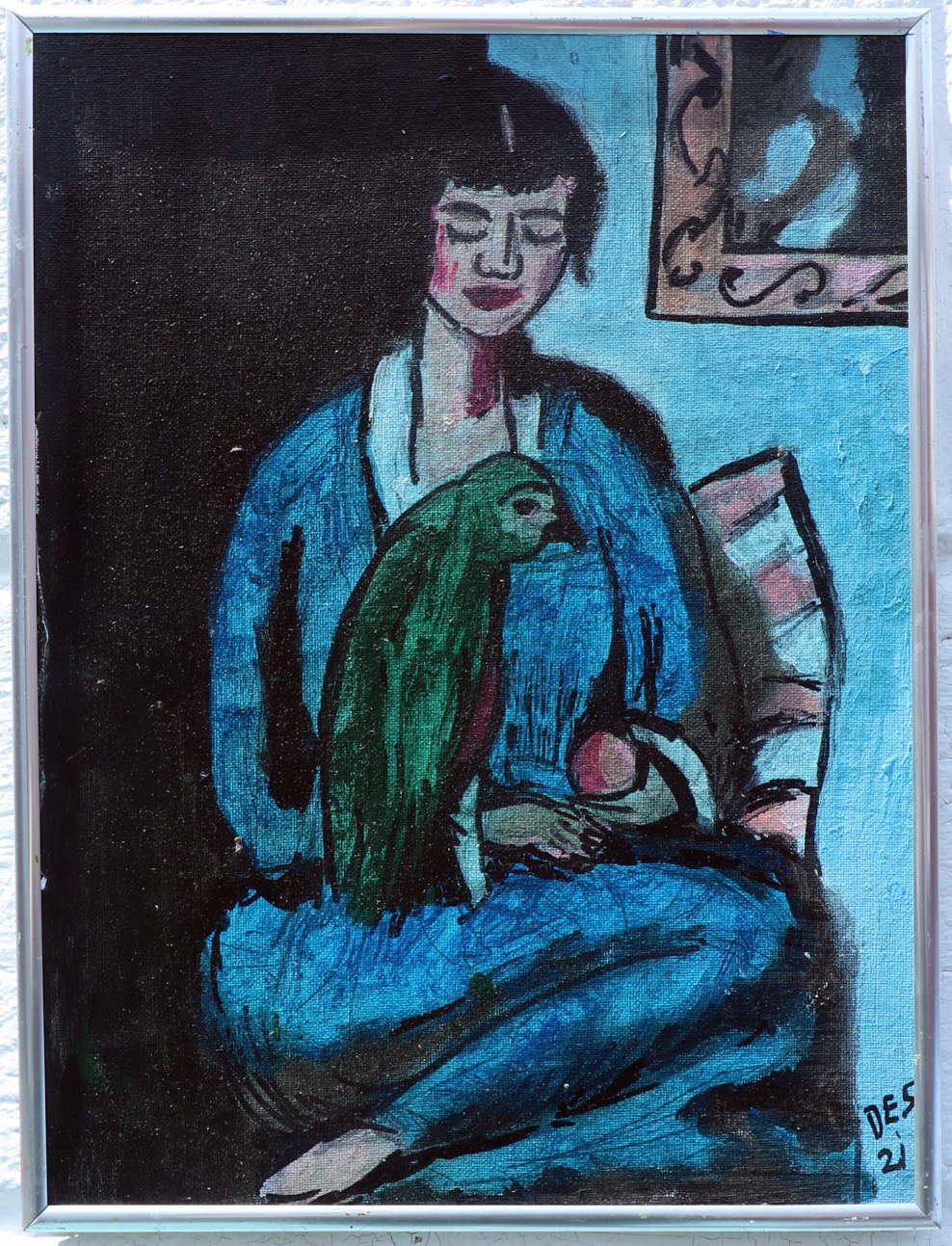 Gallery Main : Garage Gallery Exhibition : Garage Gallery Archive : Re-Mastered by Des Fox : Quappi with Parrot Quappi with Parrot By Des Fox Original credit to Max Beckmann 1936 Out of stock Category: Re-Mastered by Des Fox Information Specifications Mixed media on board Dimensions 30 × 40 cm Related products Boulevard Montmartre at NightSee more Sold Cornhill BridgwaterSee more FlowersSee more