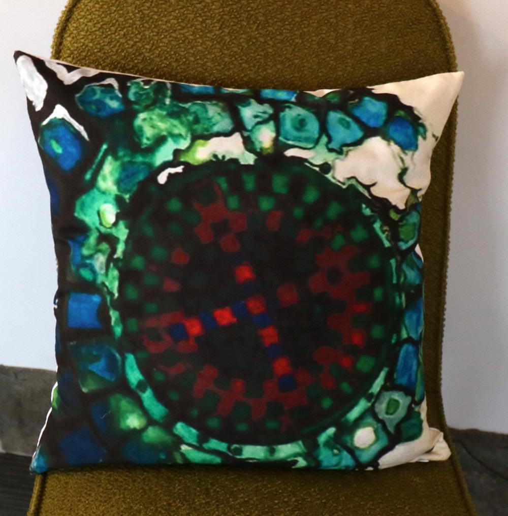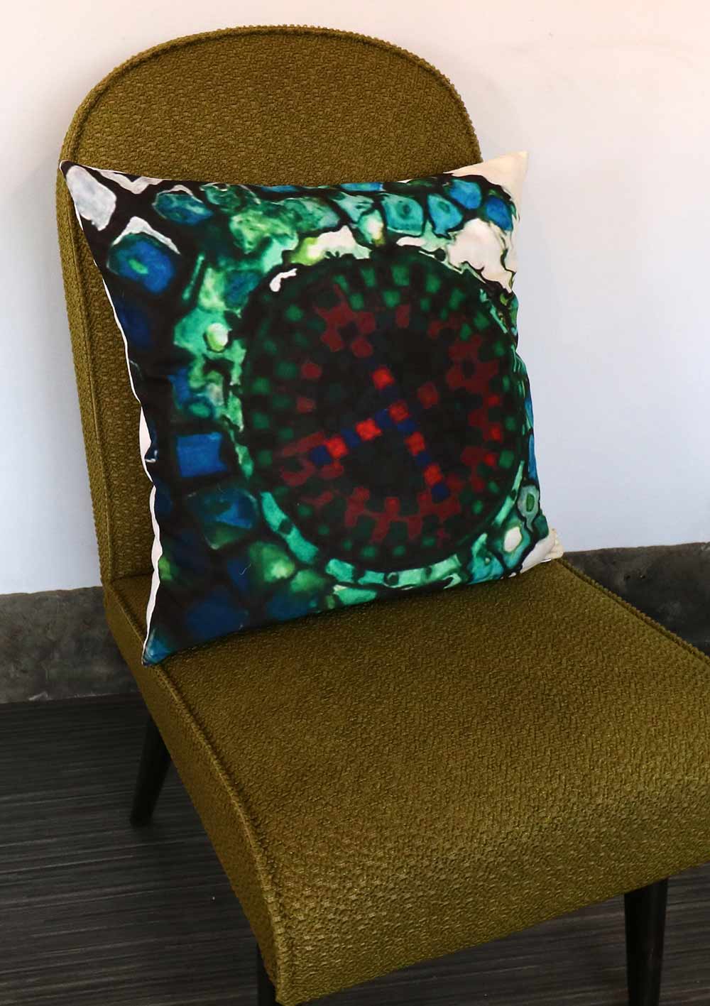 Single sided single cushion with white back and authenticity stud 42 cm sq