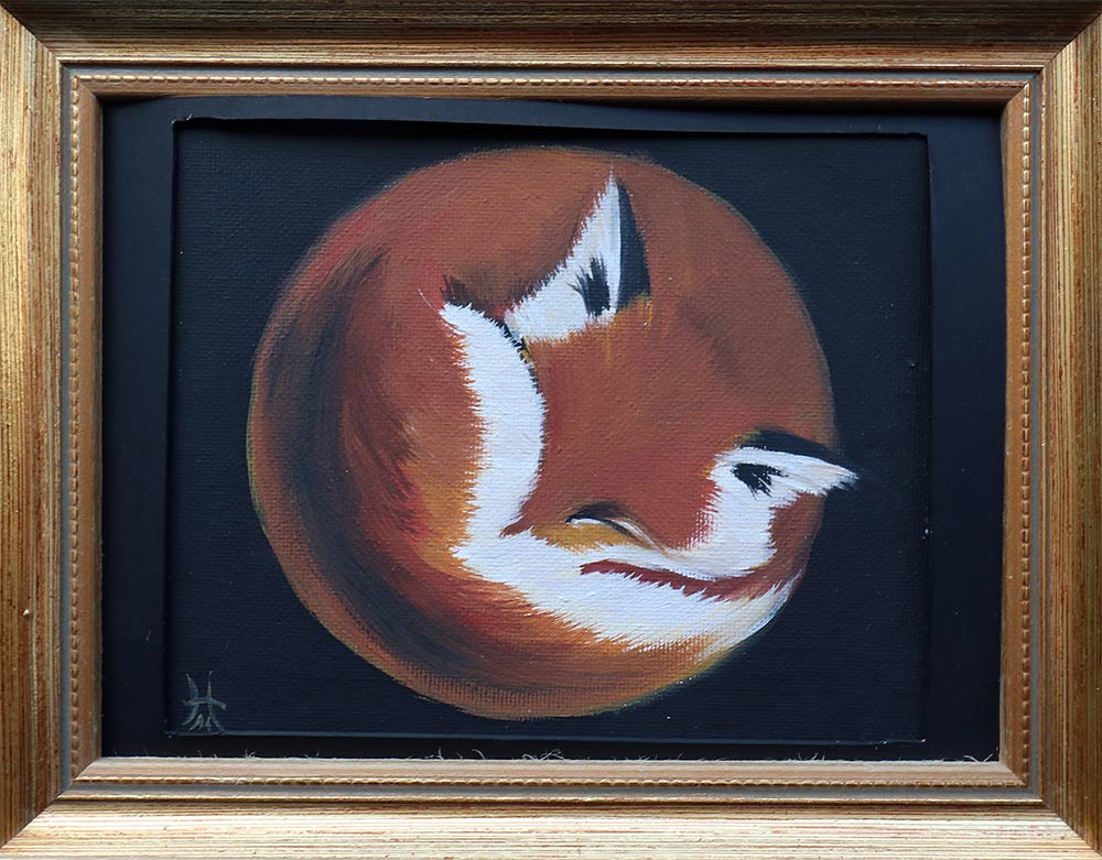 Gallery Main : Painting : Wild Form : Sleeping fox Sleeping fox£50.00 Sleeping fox by J Honrubia 1 in stock Sleeping fox quantity Add to basket Category: Wild Form Information Specifications Oil on board framed 25 cm x 20 cm Weight 0.400 kg Related products Racoons Copper Fish Stag Silhouette