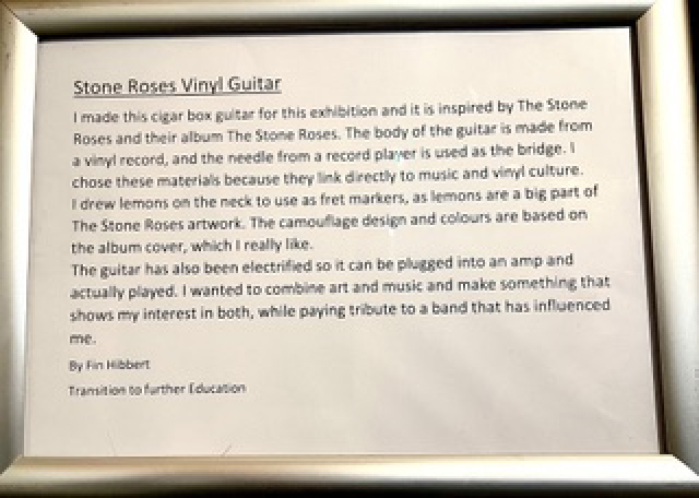 Gallery Main : Garage Gallery Exhibition : Garage Gallery Archive : Self Expression by students from UCS College Group : Stone Roses Vinyl Guitar Stone Roses Vinyl Guitar By Fin Hibbert Out of stock Category: Self Expression by students from UCS College Group Information Specifications Come and have a look in the gallery. Work is not for sale. Related products Close up SealSee more RedSee more Group workSee more