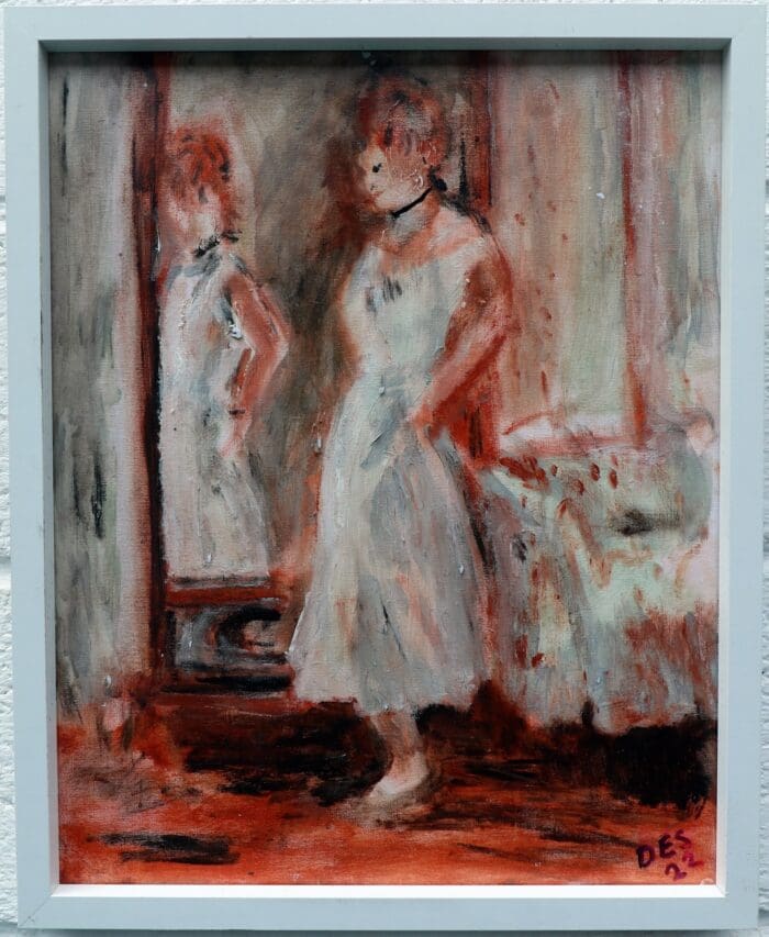 Gallery Main : Garage Gallery Exhibition : Garage Gallery Archive : Re-Mastered by Des Fox : The Psyche Mirror The Psyche Mirror By Des Fox Original credit to Berthe Morisot 1876 Out of stock Category: Re-Mastered by Des Fox Information Specifications Framed acrylic on canvas Dimensions 43.8 × 53.8 cm Related products Bedroom in ArlesSee more Going to The MatchSee more Houses of Parliament with sunshine breaking through the fogSee more
