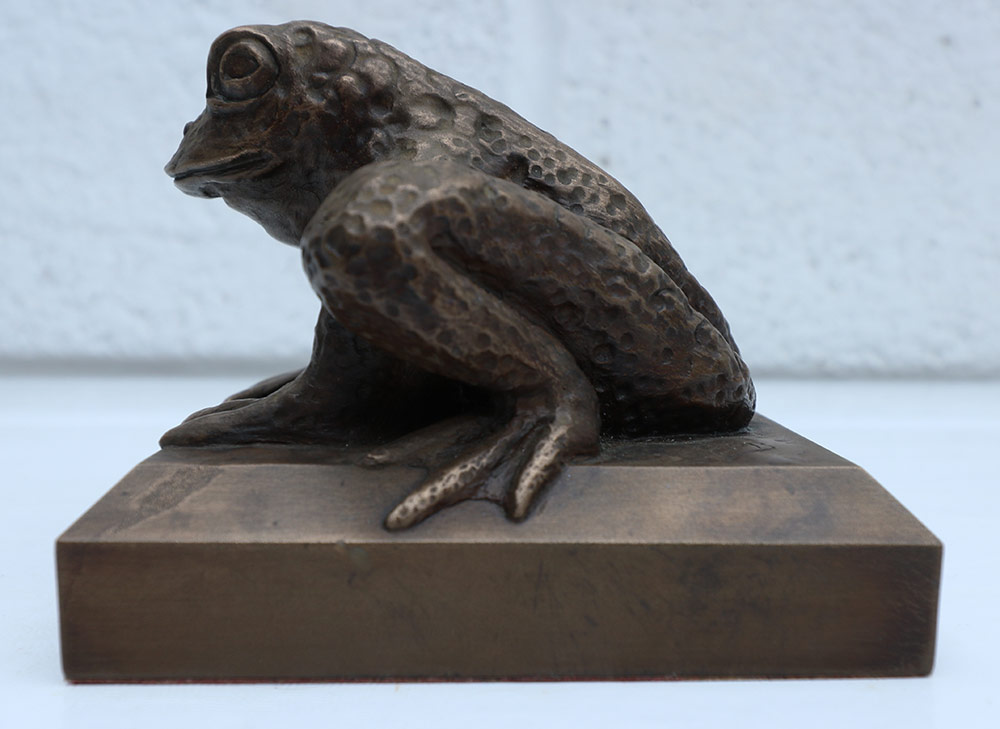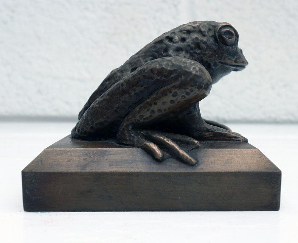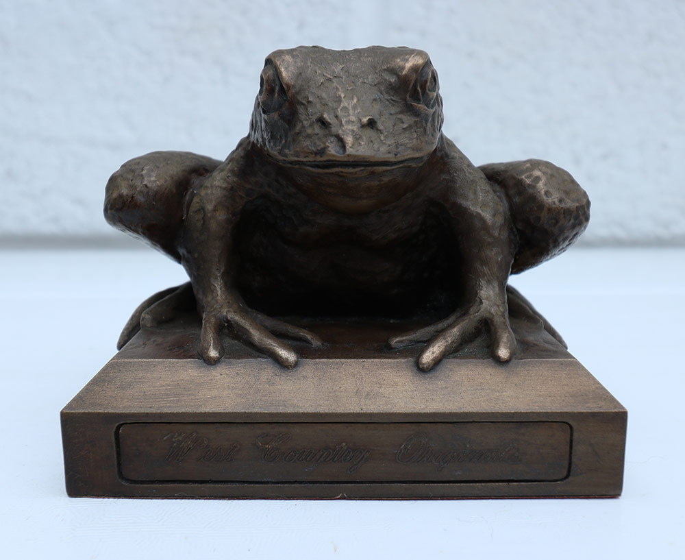 Gallery Main : Garage Gallery Exhibition : Garage Gallery Archive : Halloween and Carnival 2023 : Top Toad Sold Top Toad£60.00 Top Toad By Bridget Out of stock Categories: West Country Originals, Halloween and Carnival 2023 Tag: sold Information Specifications Top Toad Cold cast Bronze 10 cm sq x 9 cm tall Weight 1.15 kg Related products Wild Rose Wall Hanging (Verdigris) Bull This product has multiple variants. The options may be chosen on the product page Wild Rose Wall Hanging (Stone)