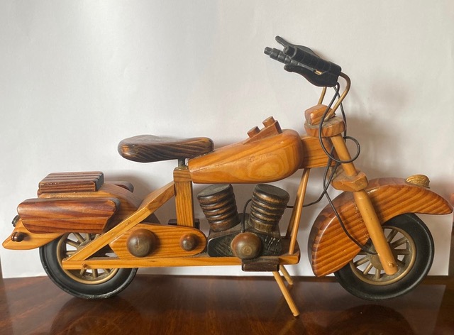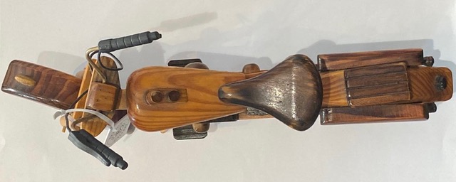 Gallery Main : Sculpture : Sculpture : Wood Motorcycle Wood Motorcycle£60.00 By Gerry 1 in stock Wood Motorcycle quantity Add to basket Category: Sculpture Information Specifications Wood Weight .800 kg Dimensions 37 × 22 cm Related products Pipistrelle Bat Sold Cold Cast Bronze CatsSee more Sold Open Decorative PotSee more
